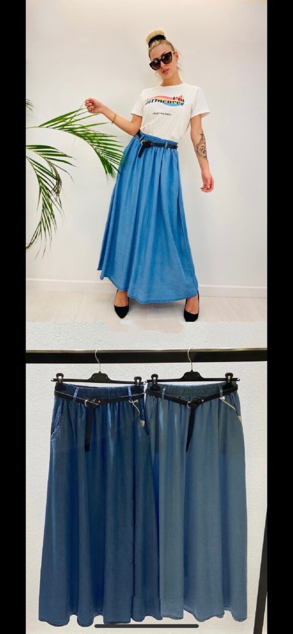 Denim φούστα maxi σε άλφα γραμμή ψηλόμεση με ζωνάκι στη μέση