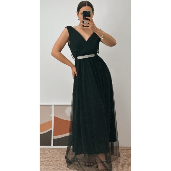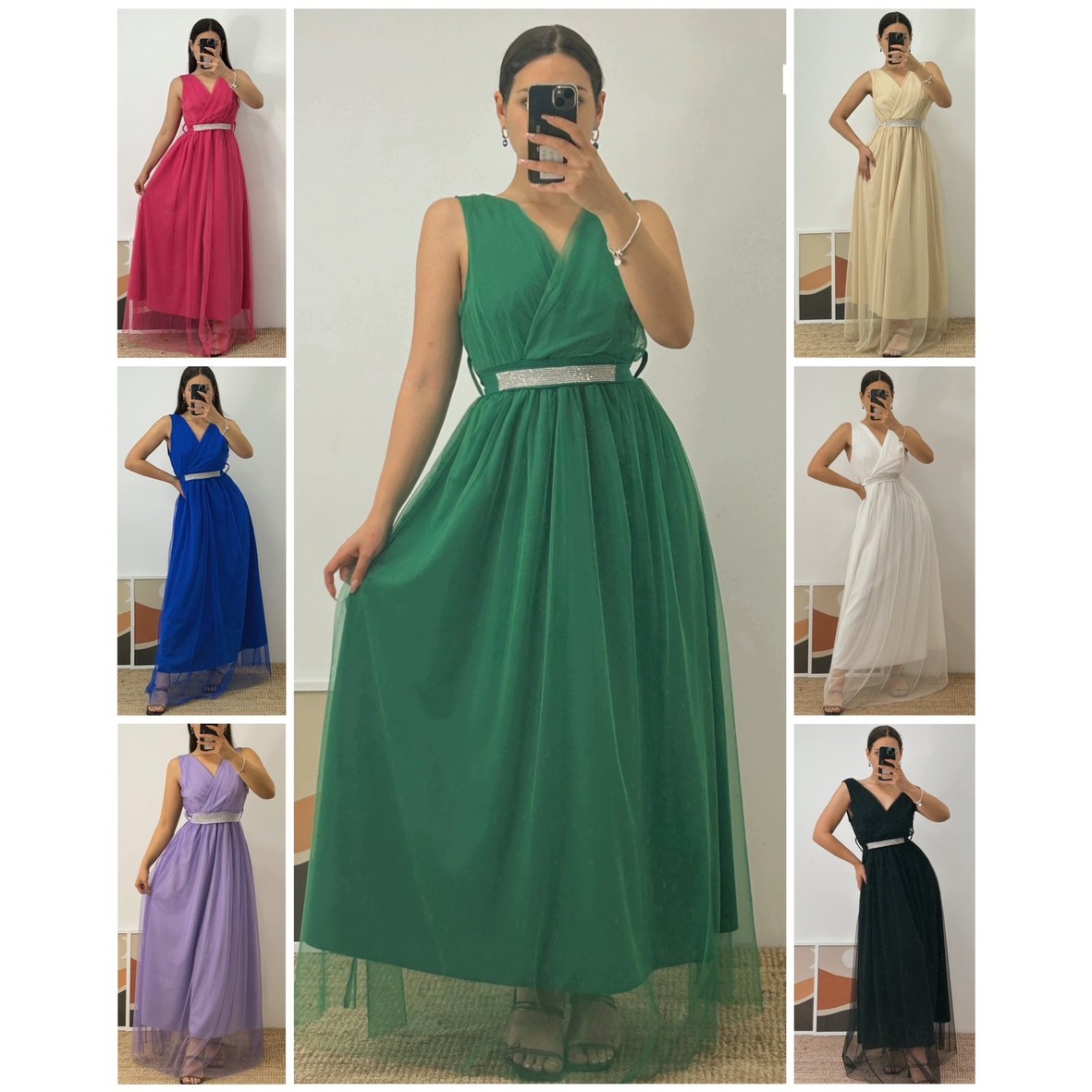 Δώστε πρώτος μία αξιολόγηση “Μάξι φόρεμα κρουαζέ με τούλι και ζώνη από στρας”