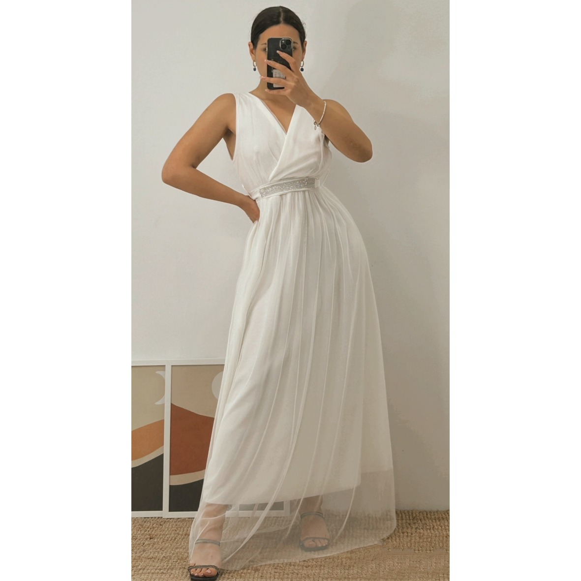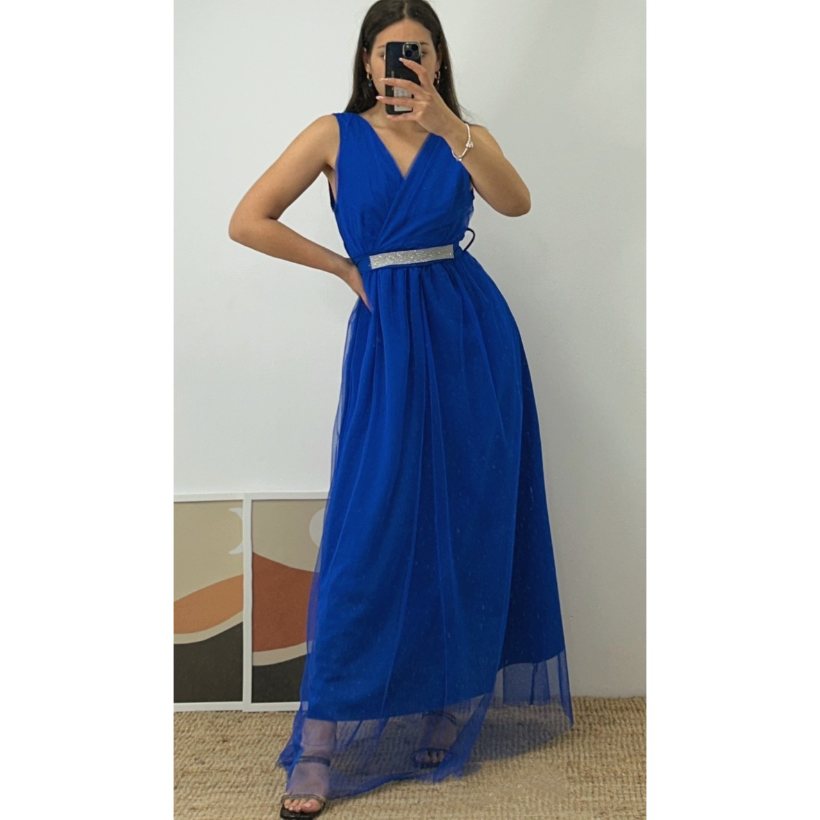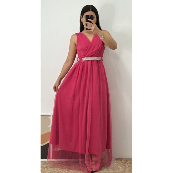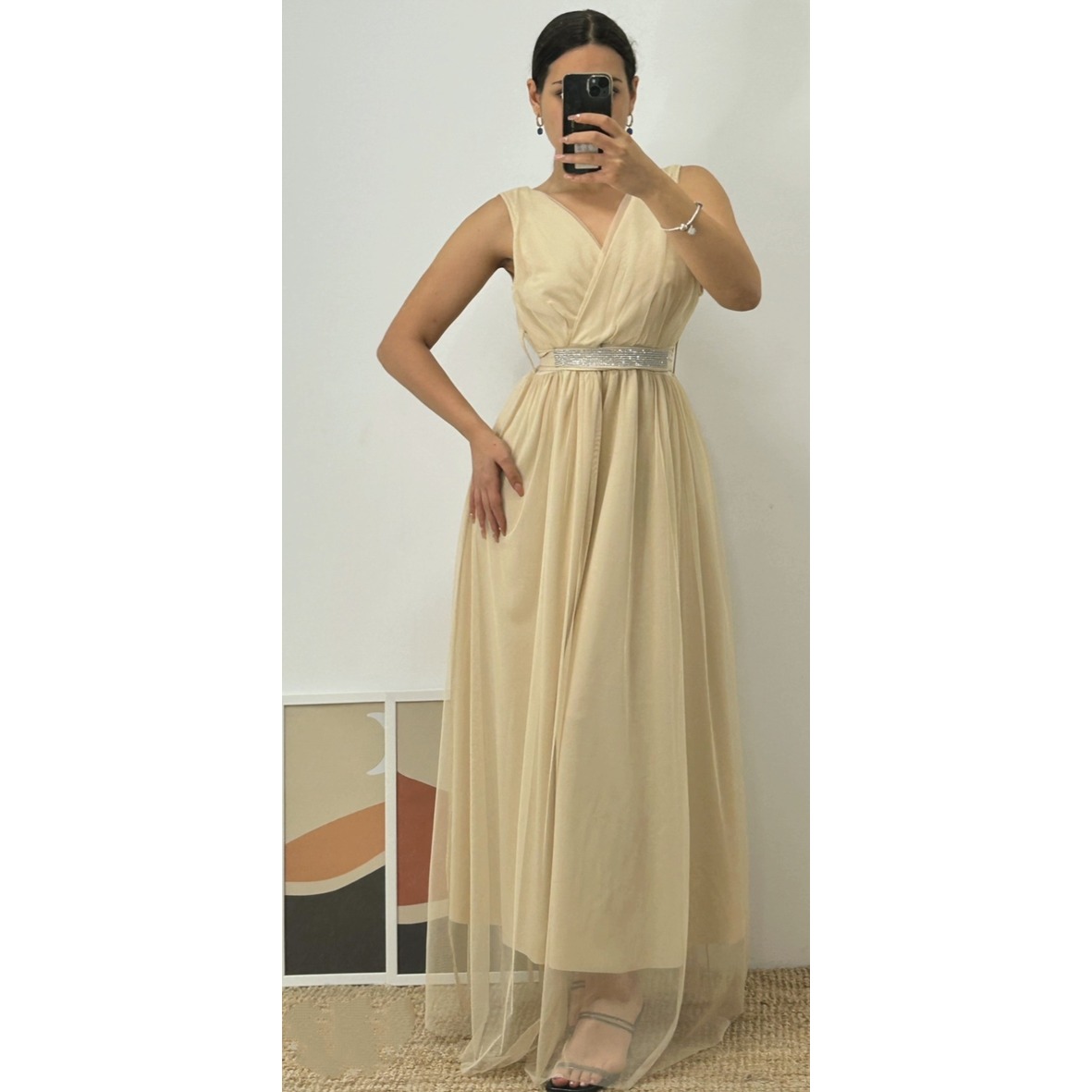 Μάξι φόρεμα κρουαζέ με τούλι και ζώνη από στρας